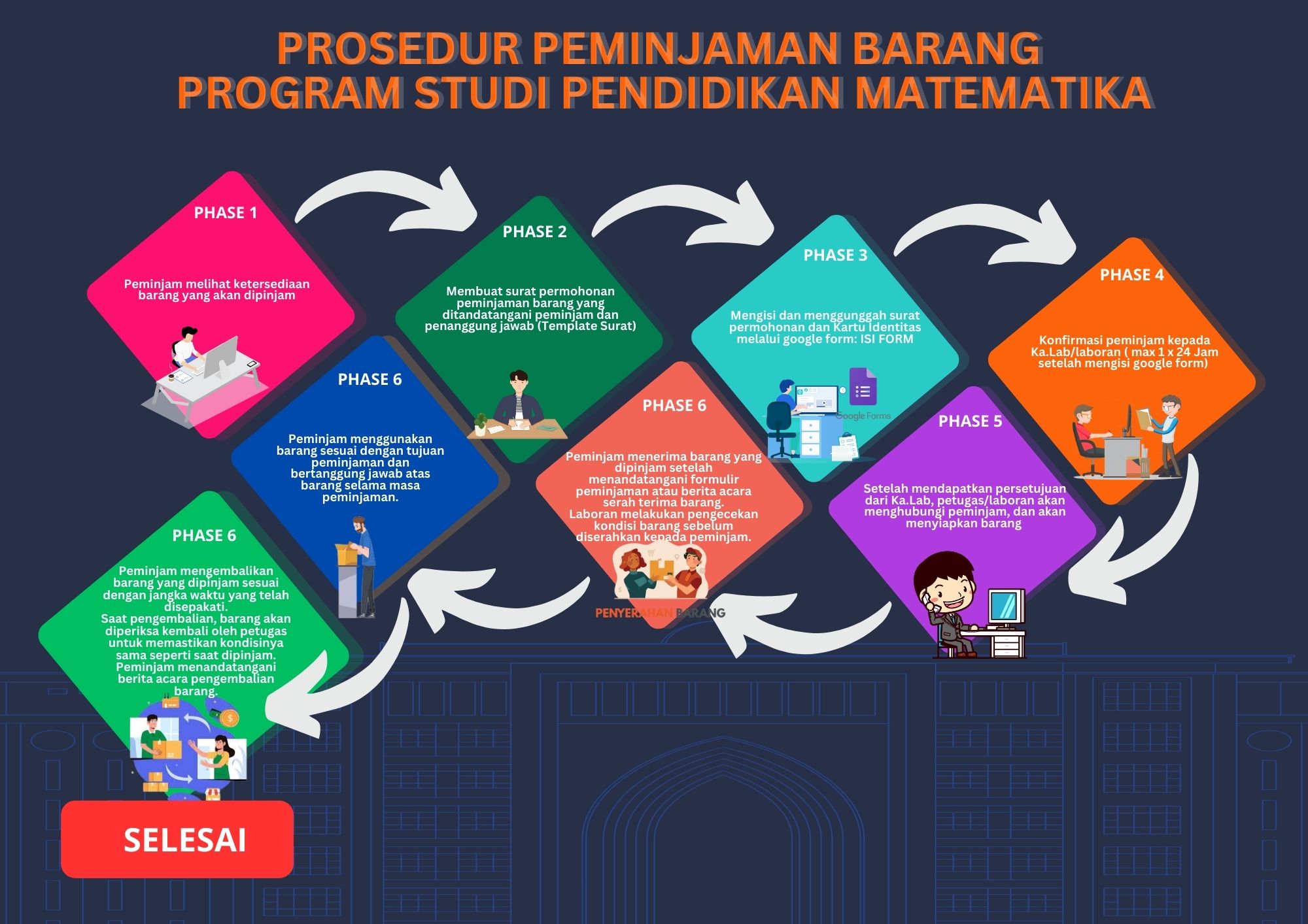 Berikut ini adalah prosedur peminjaman barang di laboratorium Program Studi Pendidikan Matematika: